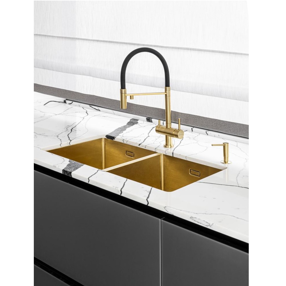 Универсальность использования: дозатор подходит для моющего средства, жидкого мыла или антисептика. Ключевые преимущества: усовершенствованный металлический помповый механизм, превосходящий пластиковые аналоги по надежности и долговечности; удобное заполнение сверху; объем резервуара 500 мл.