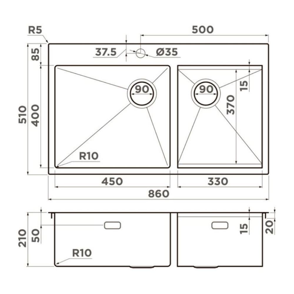 Мойка кухонная Omoikiri из коллекции Akisame 86-2-GB Side имеет размеры 860х510 мм., изготовлена из нержавеющей стали. Форма — прямоугольная, две чаши с отверстием для смесителя. Сифон в комплекте. Ширина чаши 45. Врезной монтаж. Имеется дополнительная чаша.