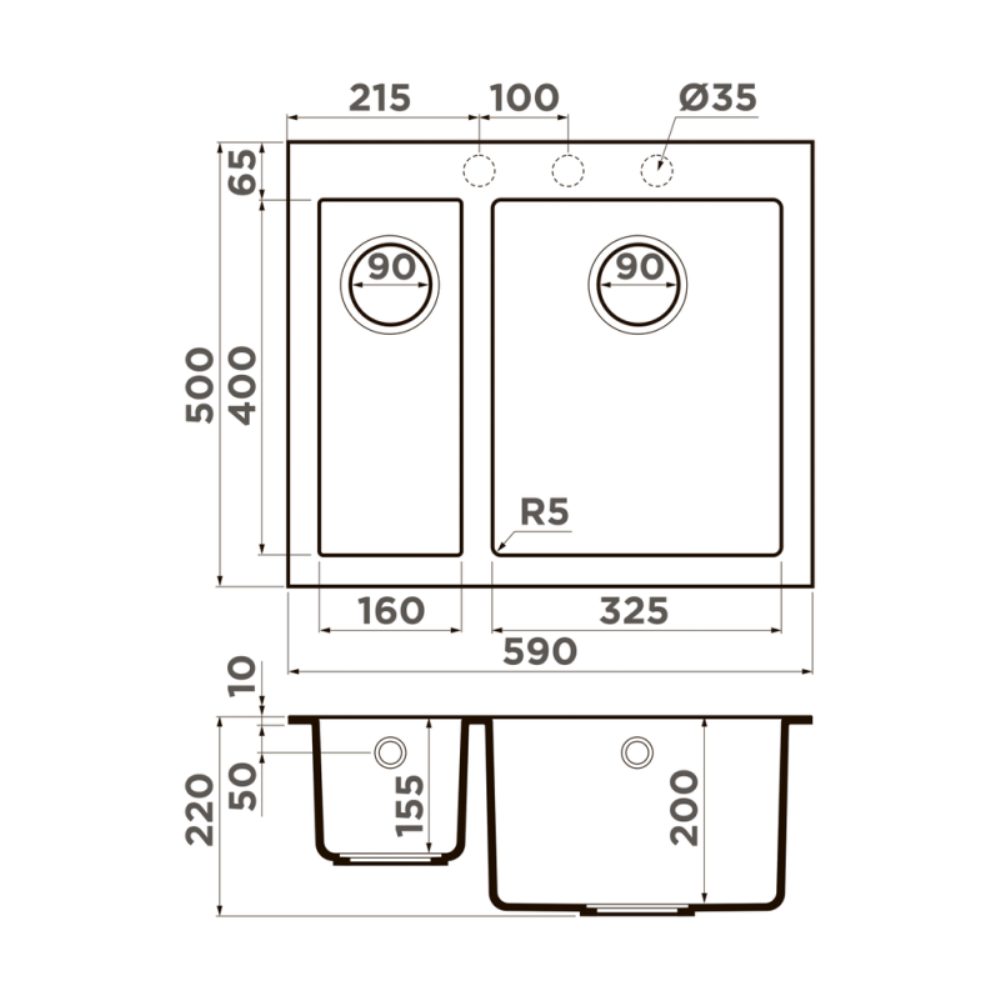 Мойка кухонная Omoikiri из коллекции Bosen 59-2-BE имеет размеры 590х500 мм., изготовлена из искусственного гранита. Форма — прямоугольная, одна чаша с отверстием для смесителя. Сифон в комплекте. Ширина чаши 32,5. Врезной монтаж. Имеется дополнительная чаша.