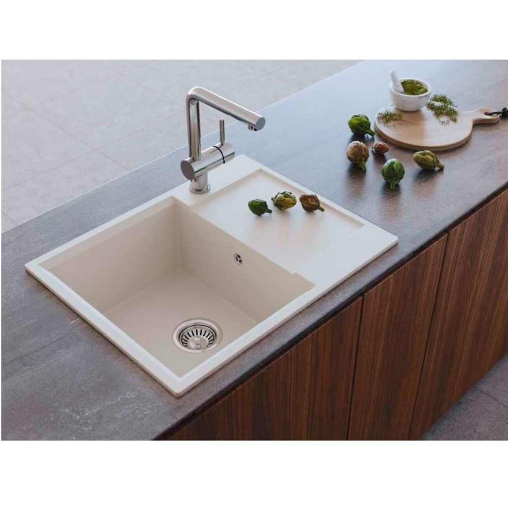 Мойка кухонная Omoikiri из коллекции Daisen 65-BL имеет размеры 650х510 мм., изготовлена из искусственного гранита. Форма — прямоугольная, одна чаша без отверстия для смесителя. Сифон в комплекте. Ширина чаши 36. Врезной монтаж. Имеется крыло.