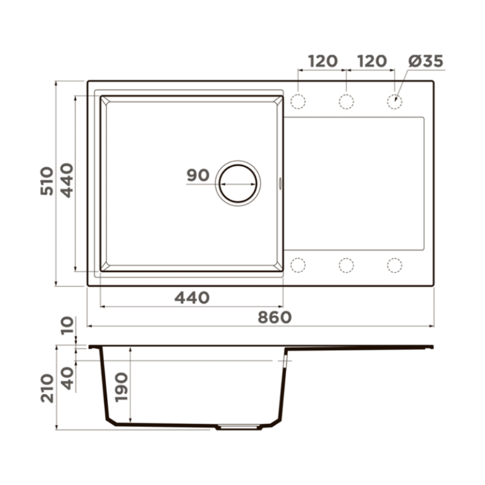 Мойка кухонная Omoikiri из коллекции Daisen 86-SA имеет размеры 860х510 мм., изготовлена из искусственного гранита. Форма — прямоугольная, одна чаша без отверстия для смесителя. Сифон в комплекте. Ширина чаши 44. Врезной монтаж. Имеется крыло.