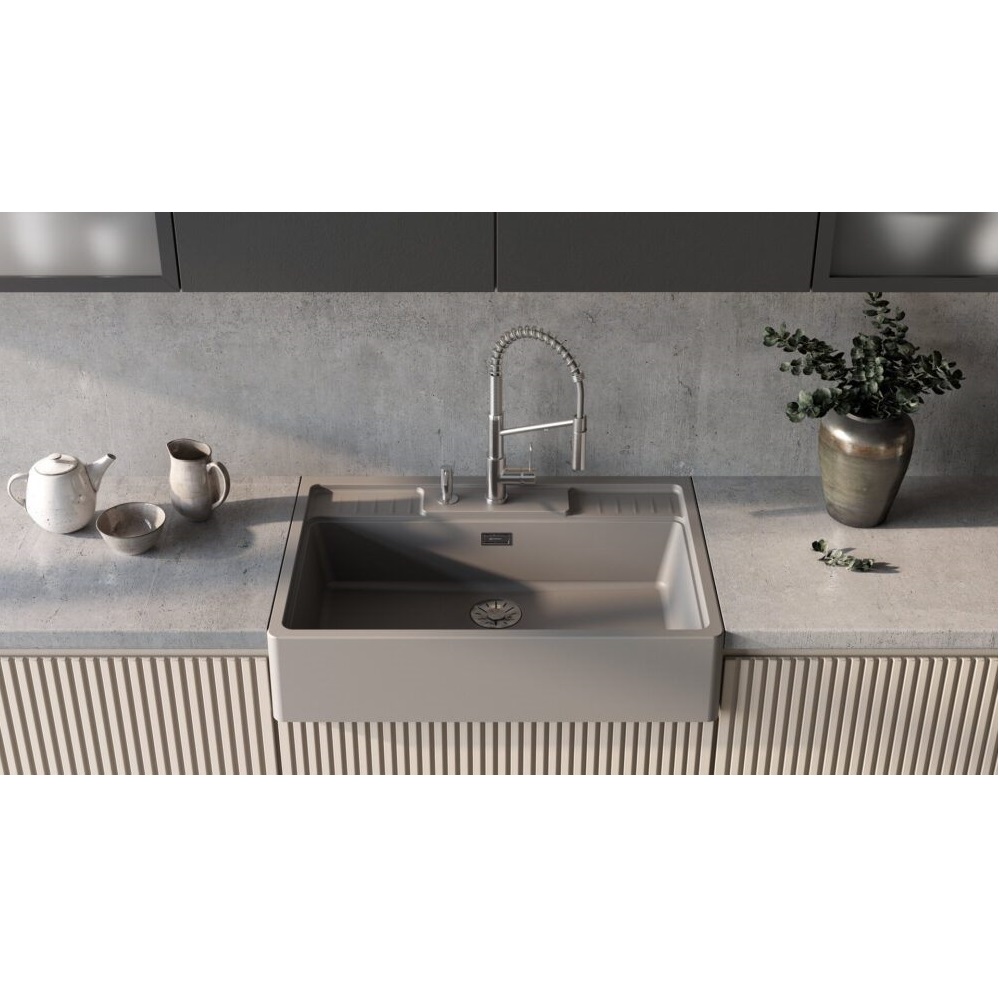 Мойка кухонная Omoikiri из коллекции Kinokawa 90-GB имеет размеры 900х635 мм., изготовлена из искусственной керамики. Форма — прямоугольная, одна чаша без отверстия для смесителя. Сифон в комплекте. Ширина чаши 84. Фронтальный монтаж.
