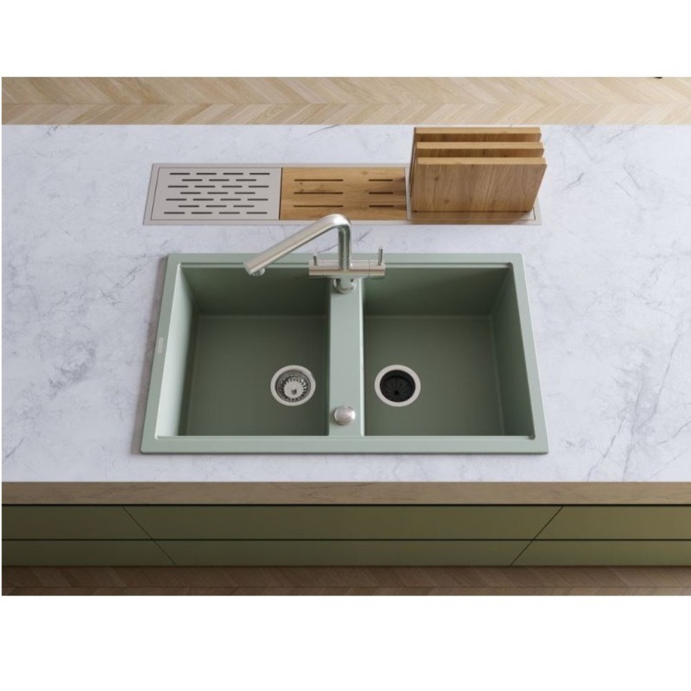 Мойка кухонная Omoikiri из коллекции Kitagawa 86-2-WH имеет размеры 860х510 мм., изготовлена из искусственной керамики. Форма — прямоугольная, две чаши без отверстия для смесителя. Сифон в комплекте. Ширина чаши 36,5. Врезной монтаж.