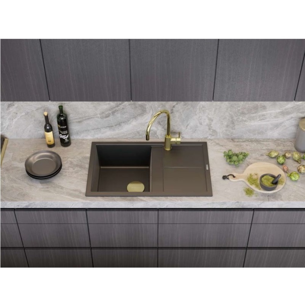 Мойка кухонная Omoikiri из коллекции Sumi 79-PL имеет размеры 790х500 мм., изготовлена из искусственного гранита. Форма — прямоугольная, одна чаша без отверстия для смесителя. Сифон в комплекте. Ширина чаши 38. Врезной монтаж. Имеется крыло.