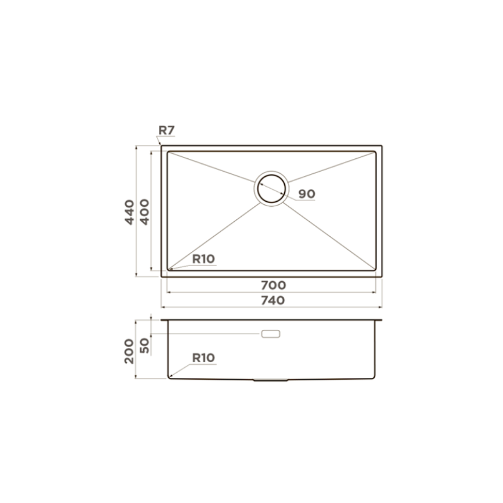 Мойка кухонная Omoikiri из коллекции Taki 74-U/IF-IN имеет размеры 740х440 мм., изготовлена из нержавеющей стали. Форма — прямоугольная, одна чаша без отверстия для смесителя. Сифон в комплекте. Ширина чаши 70. Подстольный и врезной монтаж, монтаж вровень.