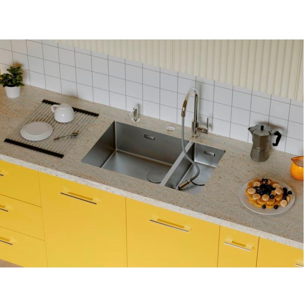 Мойка кухонная Omoikiri из коллекции Taki 69-2-U/IF-IN-R Side имеет размеры 695х440 мм., изготовлена из нержавеющей стали. Форма — прямоугольная, одна чаша без отверстия для смесителя. Сифон в комплекте. Ширина чаши 45. Подстольный и врезной монтаж, монтаж вровень. Имеется дополнительная чаша.