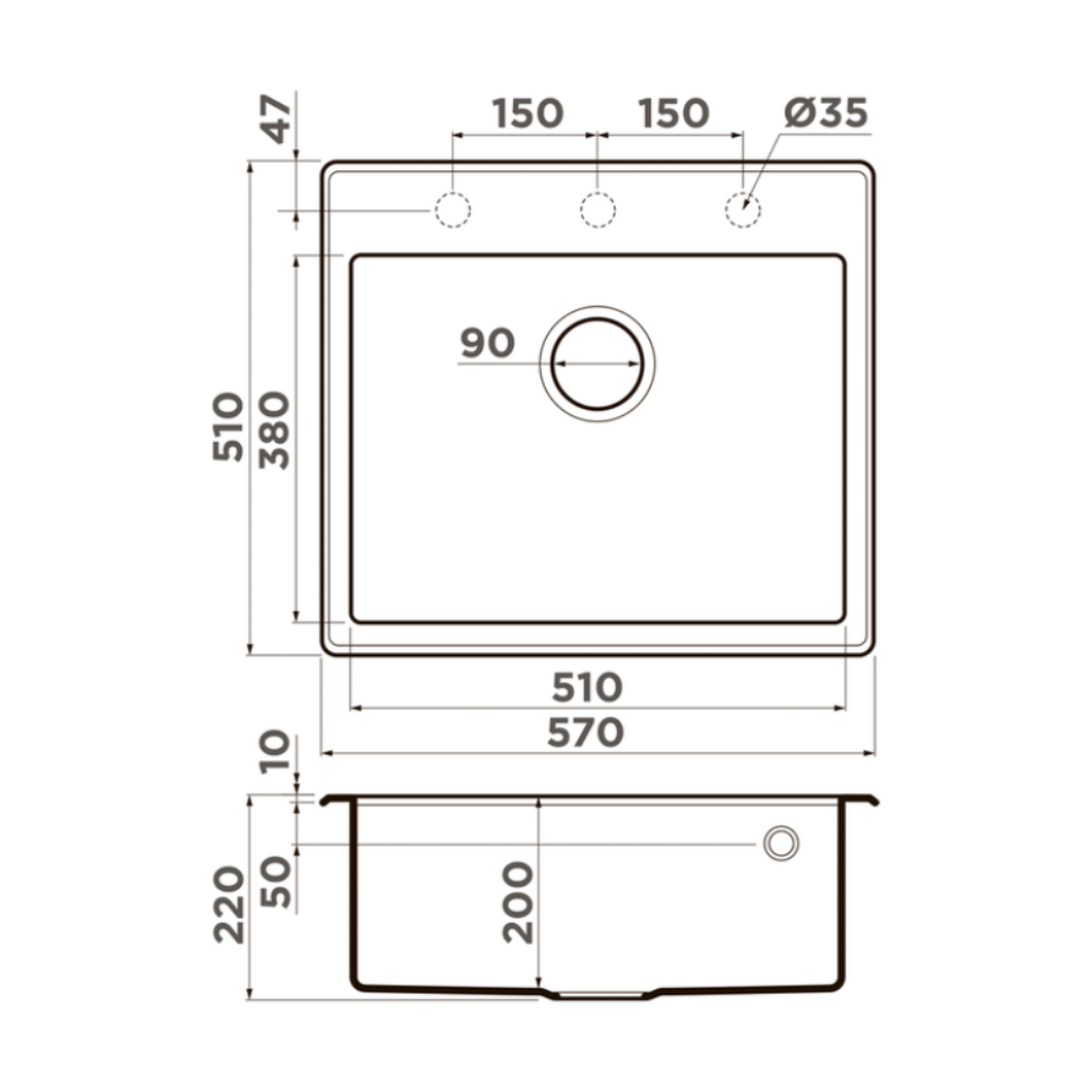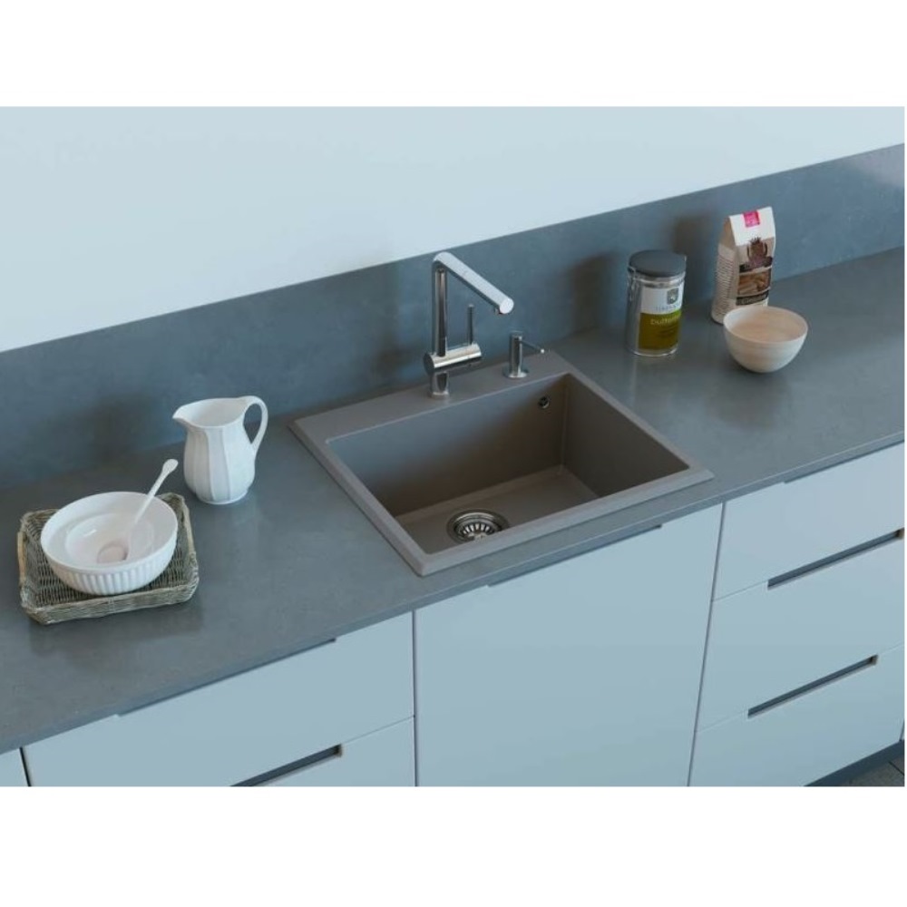 Мойка кухонная Omoikiri из коллекции Tedori 57-ES имеет размеры 570х510 мм., изготовлена из искусственного гранита. Форма — прямоугольная, одна чаша без отверстия для смесителя. Сифон в комплекте. Ширина чаши 51. Врезной монтаж.