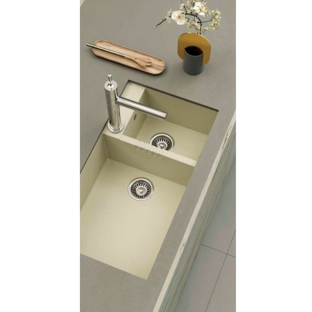 Мойка кухонная Omoikiri из коллекции Tedori 85-2-U-ES имеет размеры 850х465 мм., изготовлена из искусственного гранита. Форма — прямоугольная, одна чаша без отверстия для смесителя. Сифон в комплекте. Ширина чаши 52,5. Подстольный монтаж. Имеется дополнительная чаша.