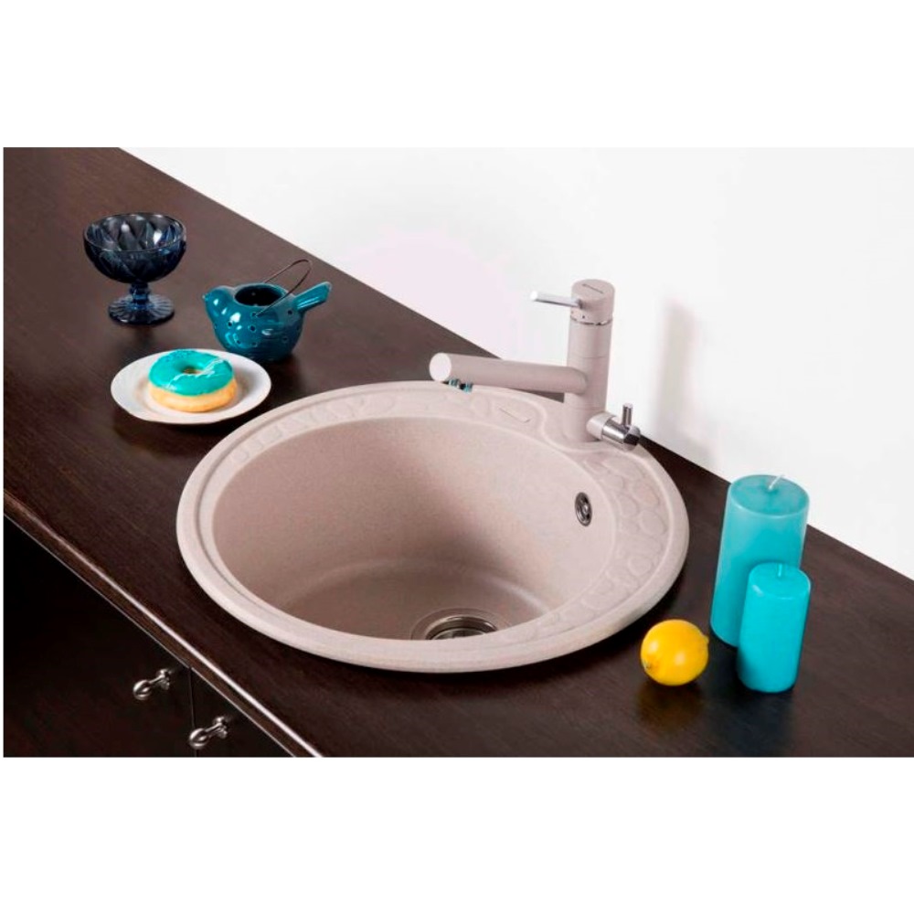 Мойка кухонная Omoikiri из коллекции Tovada 51-BE имеет размеры 510х510 мм., изготовлена из искусственного гранита. Форма — круглая, одна чаша с отверстием для смесителя. Сифон в комплекте. Ширина чаши 39,5. Врезной монтаж.