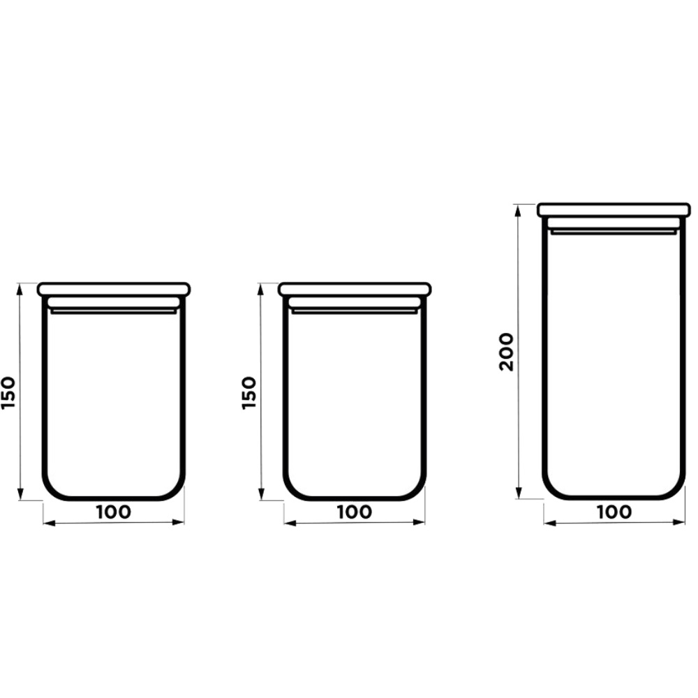 Корпус — стекло, крышка — бамбук. В комплекте 3 банки (1 — 1400 мл, 2 — по 1000 мл).