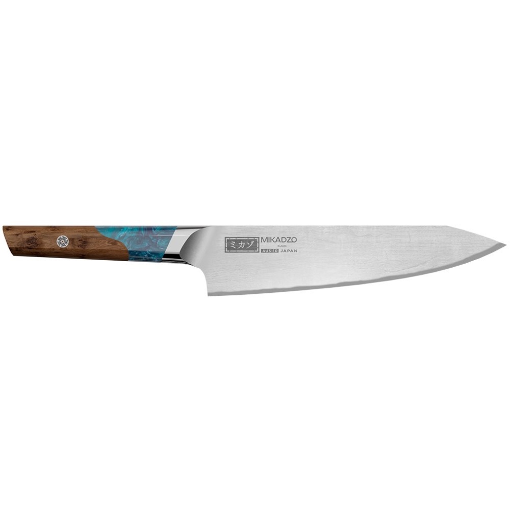 Ножи коллекции Damascus Kuon — это высококачественные ножи Mikadzo, сделанные по дамасской технологии. Лезвие ножей Damascus Kuon перетекает в рукоятку без сварки, благодаря однородной стальной основе.