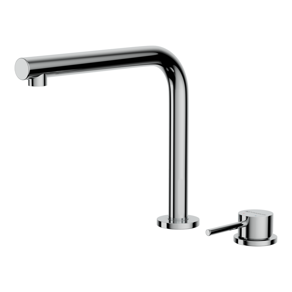 Смеситель для кухни Omoikiri Nara оснащен рычажным управлением для регулировки температуры и напора воды. Горизонтальный монтаж на 2 отверстия. Поворотный излив 220 мм.