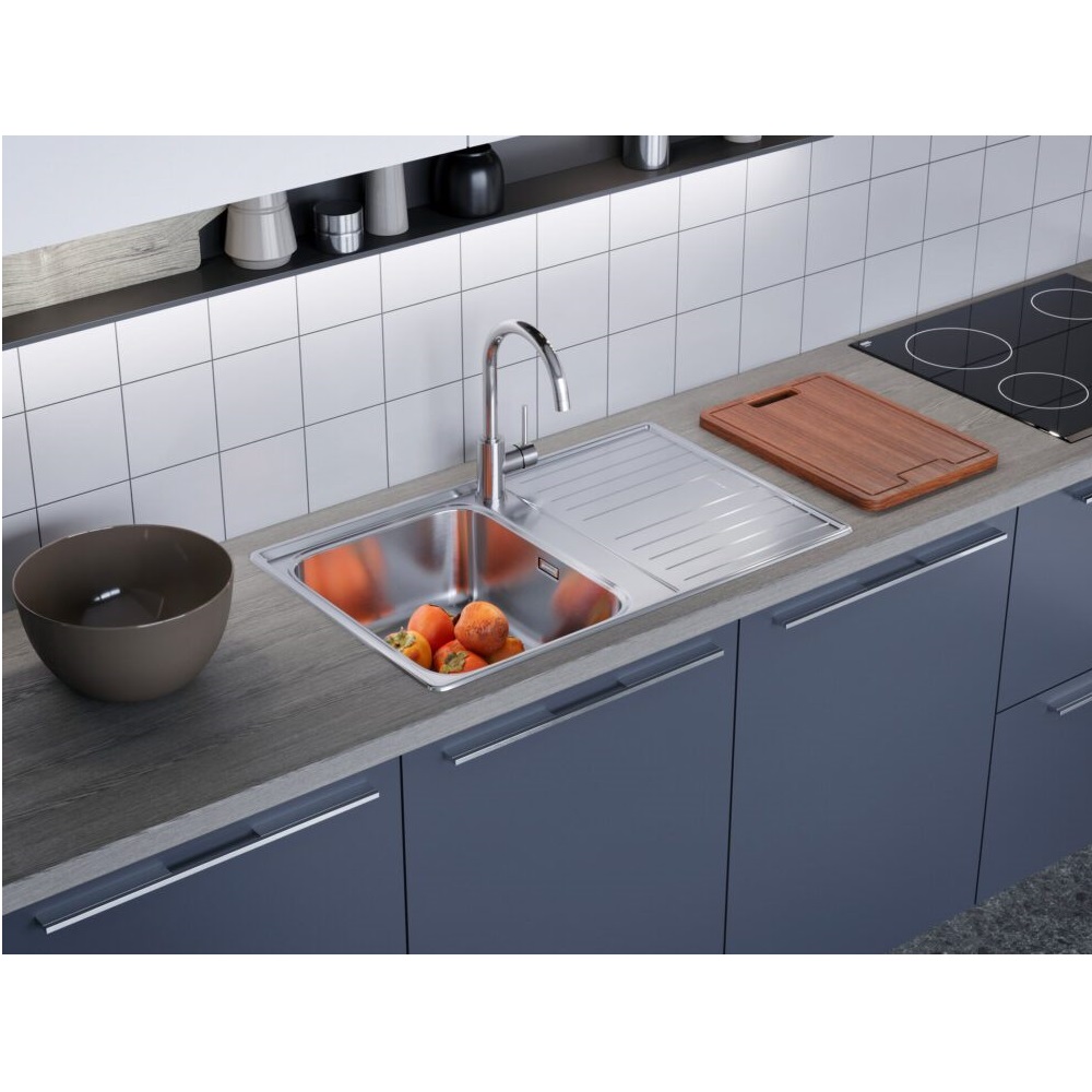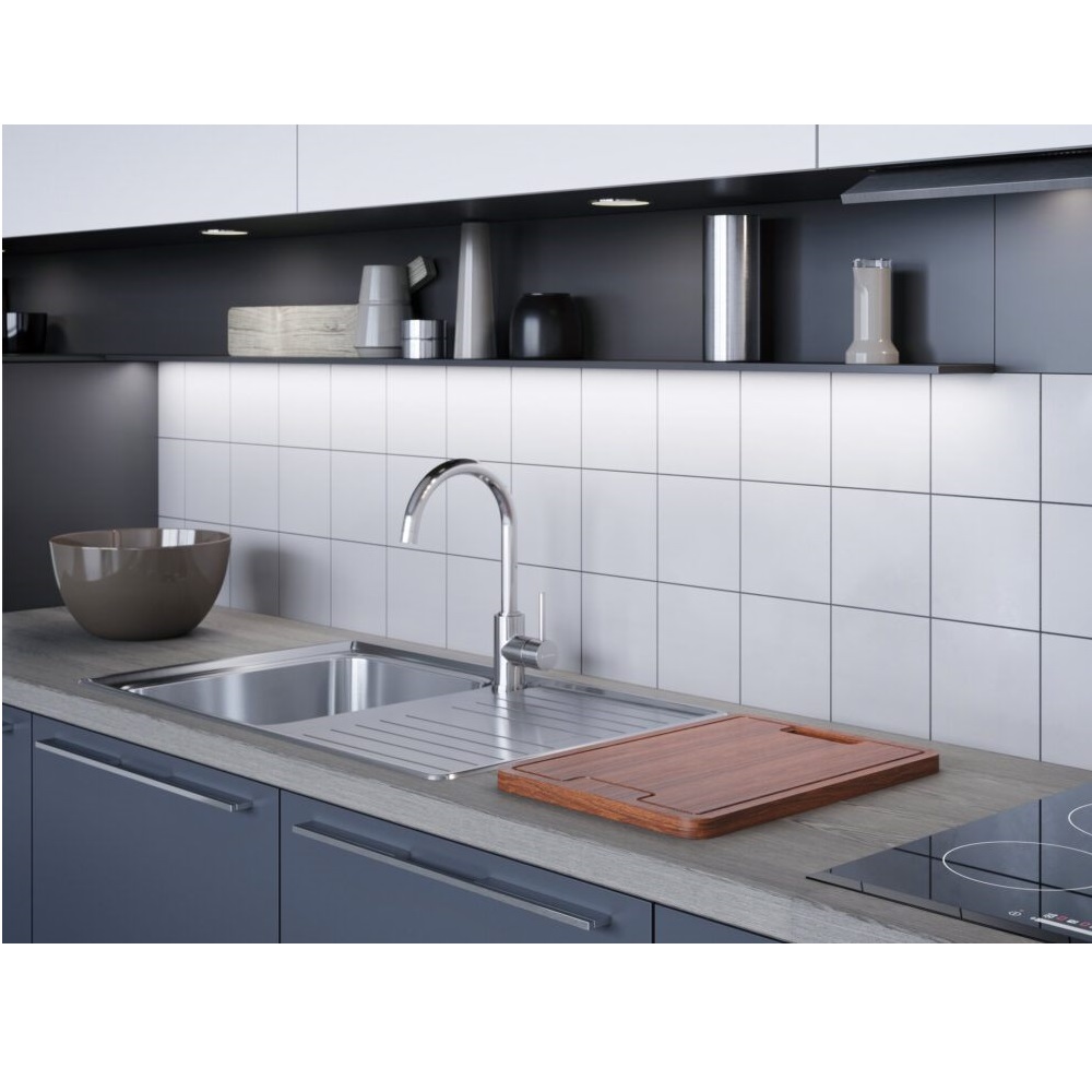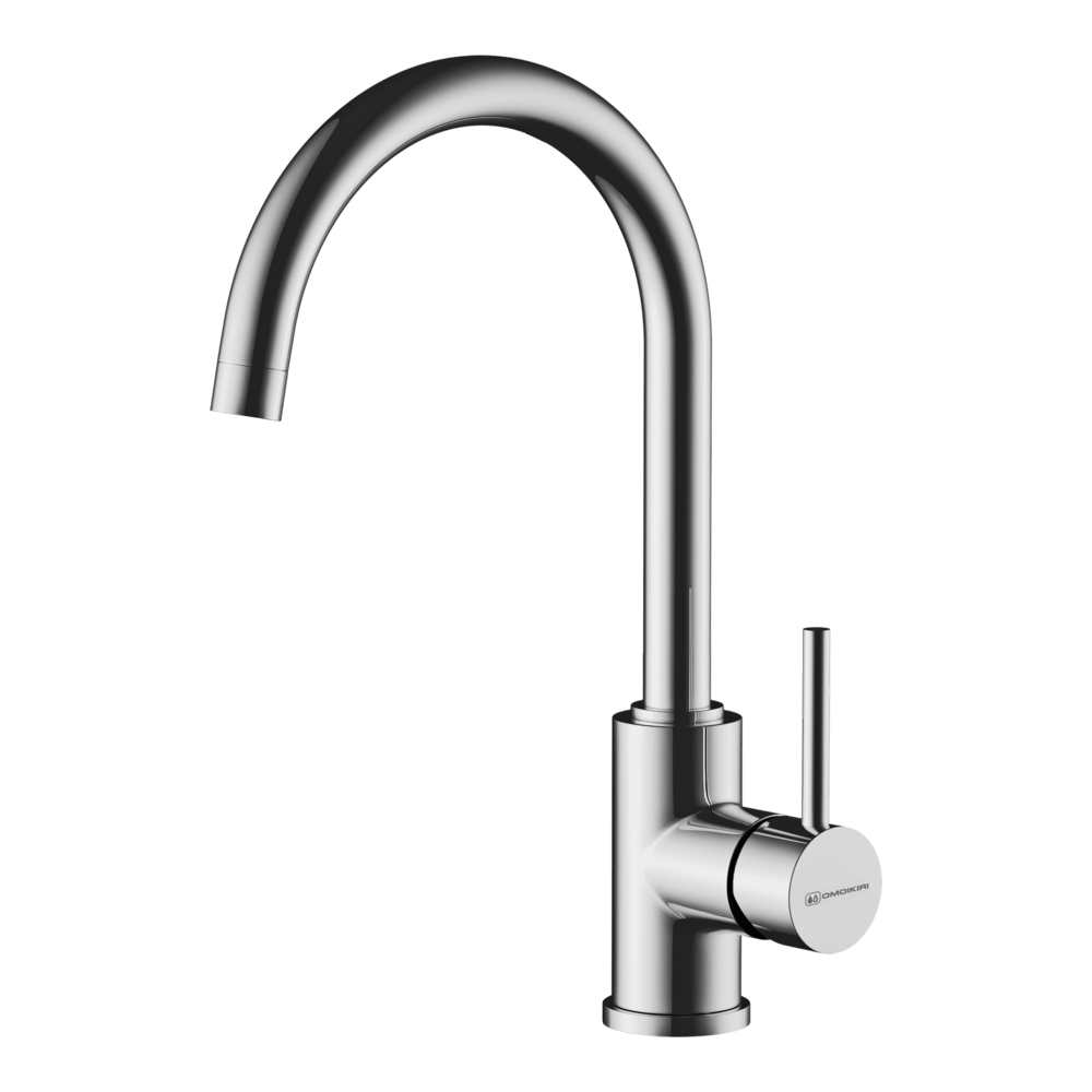 Смеситель для кухни Omoikiri Shinagawa оснащен рычажным управлением для регулировки температуры и напора воды. Горизонтальный монтаж на 1 отверстие. Поворотный излив 182 мм.